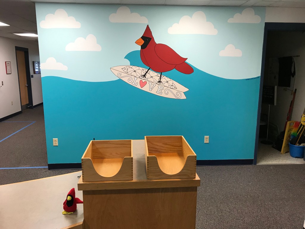 Revisited Trantwood Elementary home of the Cardinals to install this mural in their front office.