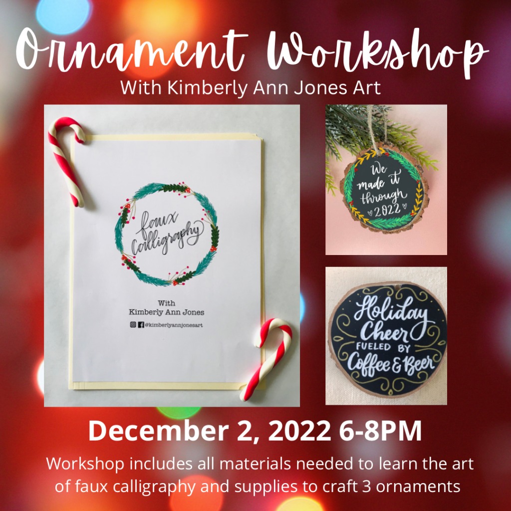 Custom Ornaments and Engraving will be available. I will have tumblers for purchase to engrave or you can bring your own.